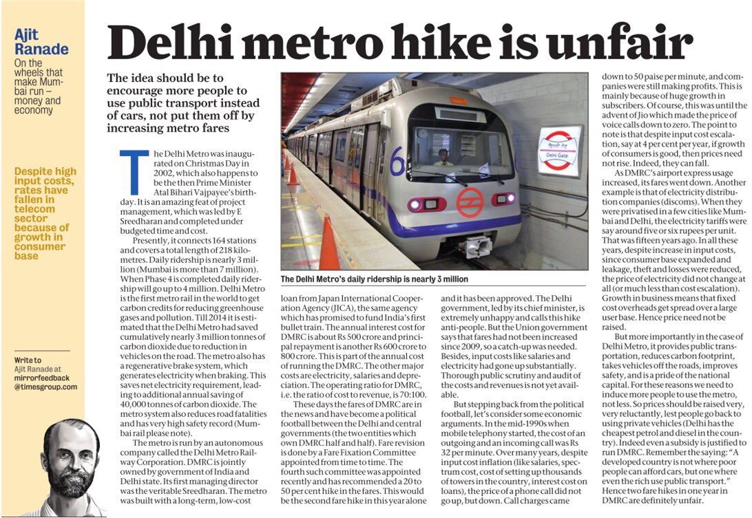 Superbly written by @ajit_ranade - Metros reduce pollution and ensure safety. Fares should be kept affordable!https://mumbaimirror.indiatimes.com/opinion/columnists/ajit-ranade/delhi-metro-hike-is-unfair/articleshow/61076218.cms …
