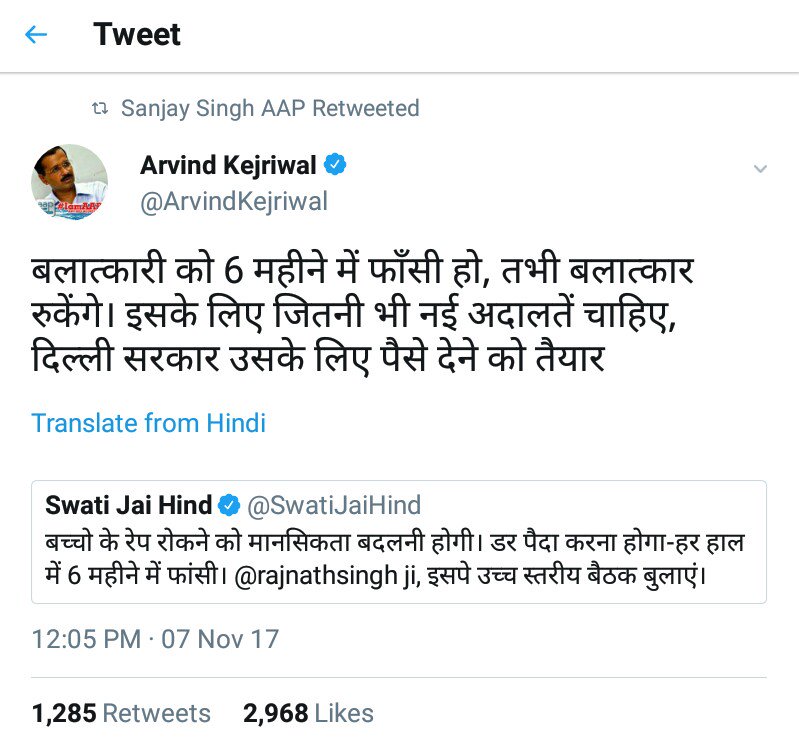 सभी आरोपीयों को सजा मिले बस एक को छोड़कर और उपर से उसे इनाम भी मिला रेप करने का केजरीवाल जी के द्वारा क्यूँकी वो एक खास वगॆ का था