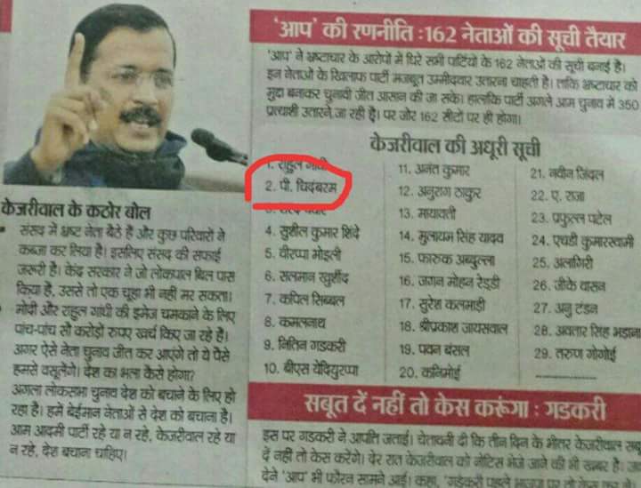 @ArvindKejriwal ने जिस चिदम्बरम को बेईमान की लिस्ट में शामिल किया था वहीँ चिदम्बरम आज केजरीवाल के वकिल हैँ ओर इनका केस लड़ेंगे !