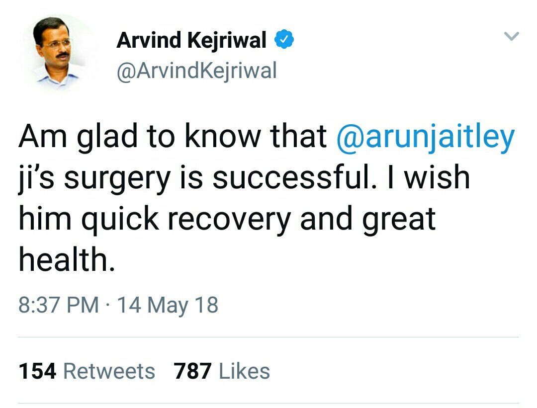 Yes, he was much relieved after he heard about an apology letter sent to him by some looney toon!https://twitter.com/ArvindKejriwal/status/996044383316131842 …