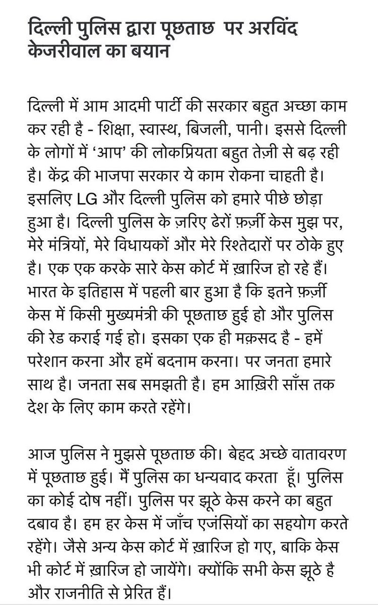 इनलोगों को मुद्दों पर जनहित में कार्य तो कभी करना नहीं है न किसी को करने देना है जब कुछ न सूझे तब सिर्फ और सिर्फ हमारे @ArvindKejriwal भाई जी को ही हर तरह से परेशान करते हैं । मैं तो देश के इतिहास में ऐसा पहली बार देख रही हूँ की एक CM से 3घंटे पूछताछ की । हद है -