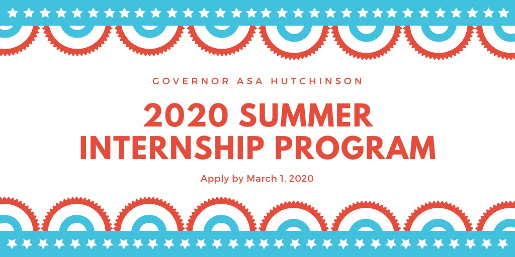 Don't miss your opportunity to be part of our 2020 Summer Internship Program. Click here to apply by March 1, 2020: https://governor.arkansas.gov/our-office/internships …pic.twitter.com/2euR54tl0x