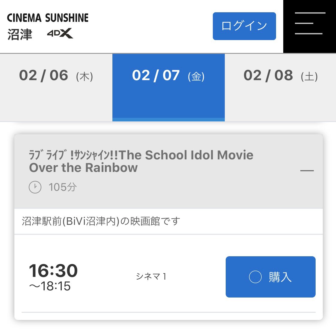 ラブライブ!サンシャイン!!劇場版再上映、2/7(金)よりのスケジュール。今週末は金曜のみ16:30から、以降は13:45からと20:20からの1日2回。土日はギルキスLVとのはしごも可能でありがたみ。