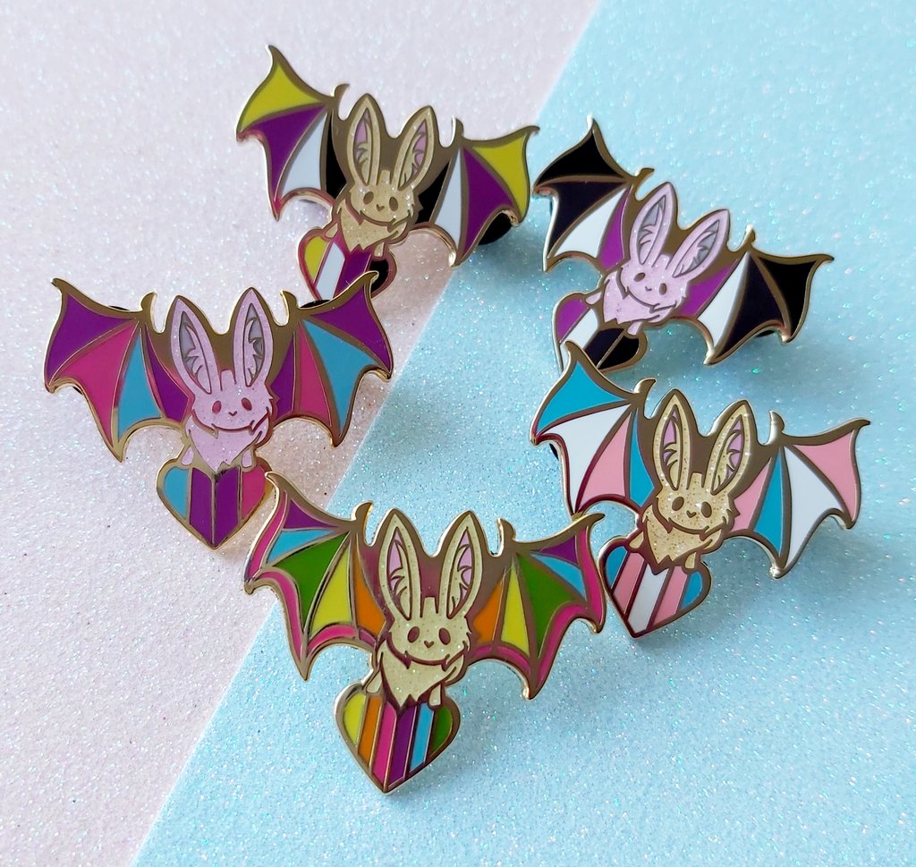 Hey Twitter cuties! I finally have my trans and non-binary bats up in my store! That makes a total of 5 batty bats in my lil collection so far