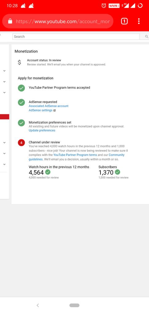 @TeamYouTube Dear youtube my channel completed 4K Hours and 1K subscriber in previous 365 Days and my channel is under review For monetization within two week But No any reply pls approve my monetization and solve this issue and guide us Thank u Link- http://youtube.com/techsupportashish …pic.twitter.com/WCTydSMaeD