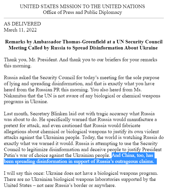 #Ukraine but today was the first time Russia went on the offensive & called for a mtg rather than playing defense. US & China also traded barbs for 1st time Tough times ahead at the UN if Moscow dials up the brutality on the groundhttps://twitter.com/AshishSPradhan/status/1502318684987133953 …