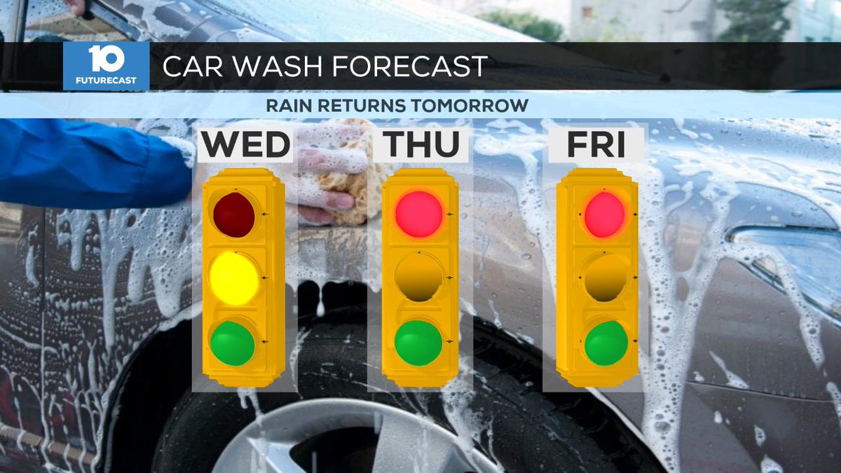 Need a car wash? Even though today is sunny and dry, I would wait. Mother Nature will give us a "free" car wash with rain tomorrow into early Friday, so wait to wash your car until this weekend when we dry out.