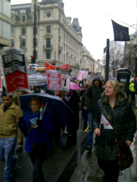 Thousands march in London in the rain in Solidarity with #Gaza and against UK govt indulgence of Israeli war crimes.pic.twitter.com/rsMilZ30