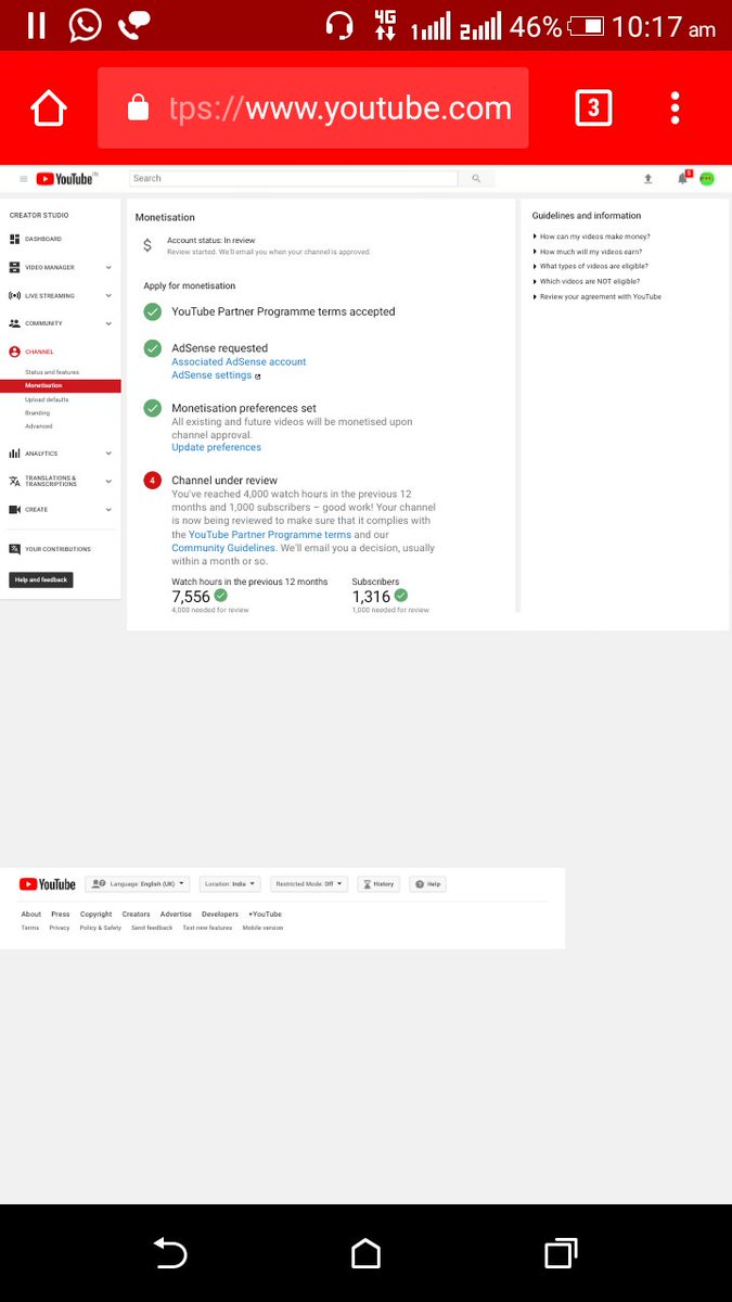 My YouTube channel complete 4K hours watch time and 1K subscriber lost 12 month my my YouTube channel review started but my review still under view after one week