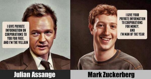 via @mcrispinmiller, "A world that hails Mark Zuckerberg while Julian Assange can't step outside is in big trouble."pic.twitter.com/DfjL4ml2CK
