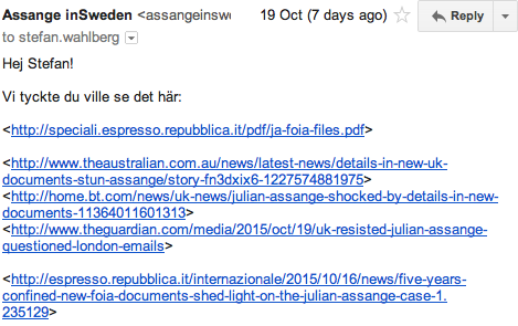 Assange in Sweden‏ @AssangeInSweden 26 Oct 2015