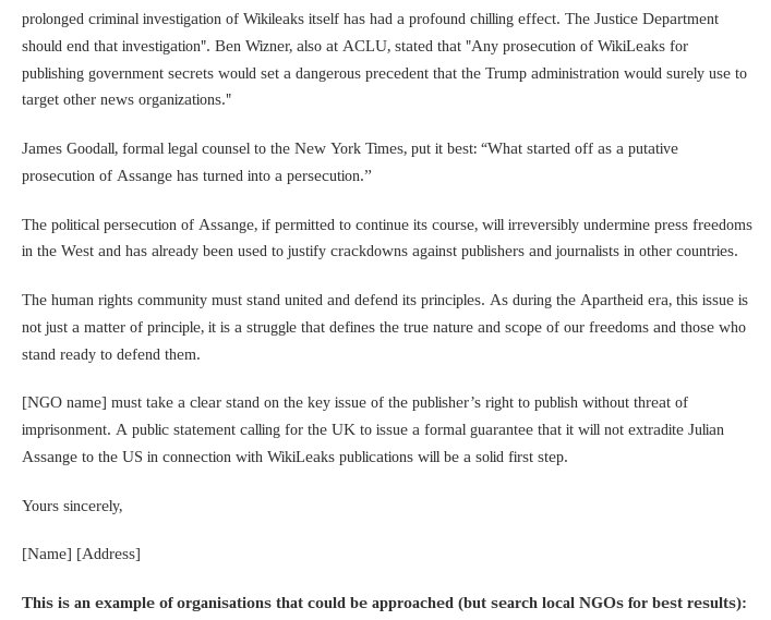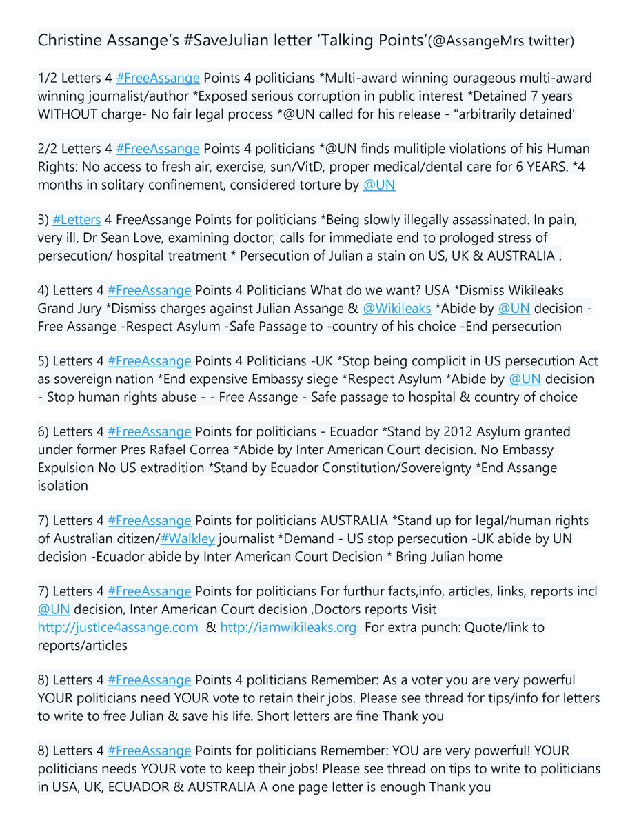Christine Assange's twitter feed of 'talking points' for letter writing:pic.twitter.com/oc6sAxO8aK