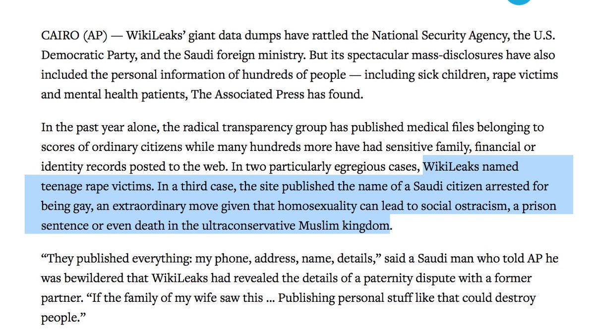 Just a reminder for Julian Assange enthusiasts out there: he is not a good person & Wikileaks is not a good organization. Just b/c they publish information, doesn't make them journalists. https://apnews.com/b70da83fd111496dbdf015acbb7987fb … pic.twitter.com/mTmOJskX8l