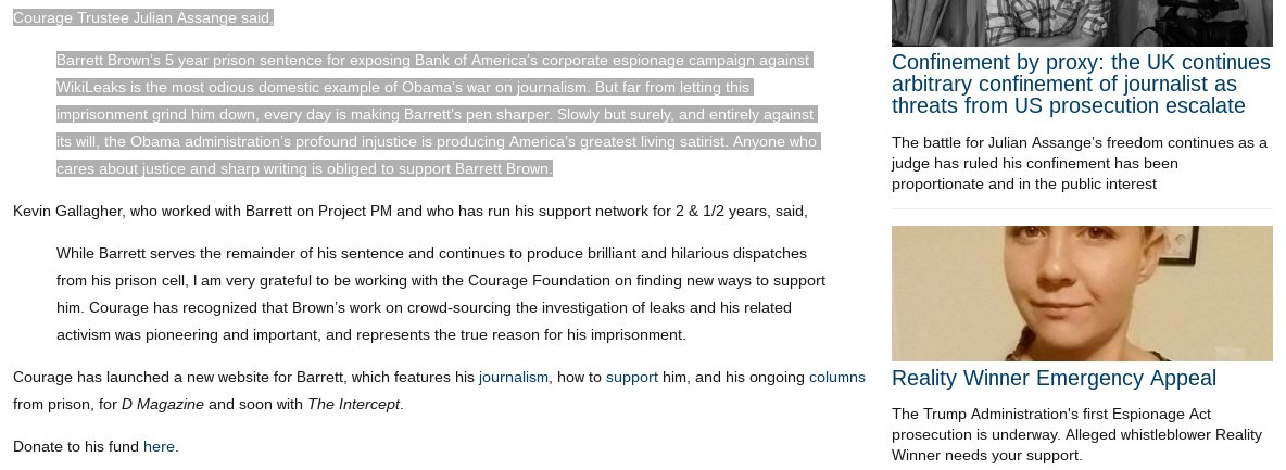 One of Assange’s lawyers is publicly claiming that Assange was involved in my defense even though it’s public record that my entire legal fund was overseen by Kevin Gallagher. His FreeBB org was incorporated under Courage after my sentencing.https://twitter.com/AssangeLegal/status/1021042131841048576 …