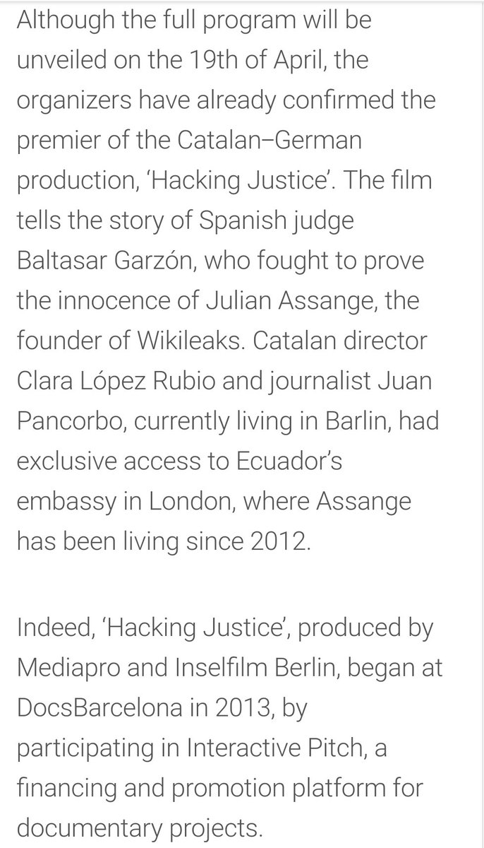 The film #HackingJustice 🎬tells the story of Spanish judge Garzón, who fought to prove innocence of @JulianAssange http://www.cubasi.com/culture/item/10895-docsbarcelona-to-screen-hacking-justice … pic.twitter.com/DRBoM0GYpd