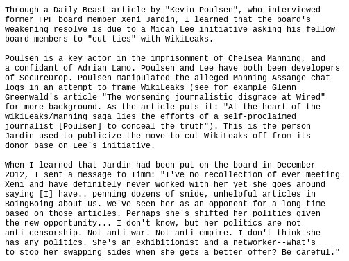 You mean your departure over your dealings with Kevin Poulsen, famous for his role in putting @xychelsea in prison with Lamo's help? https://pastebin.com/raw/qnB5gMam pic.twitter.com/1vtUwvWG6S