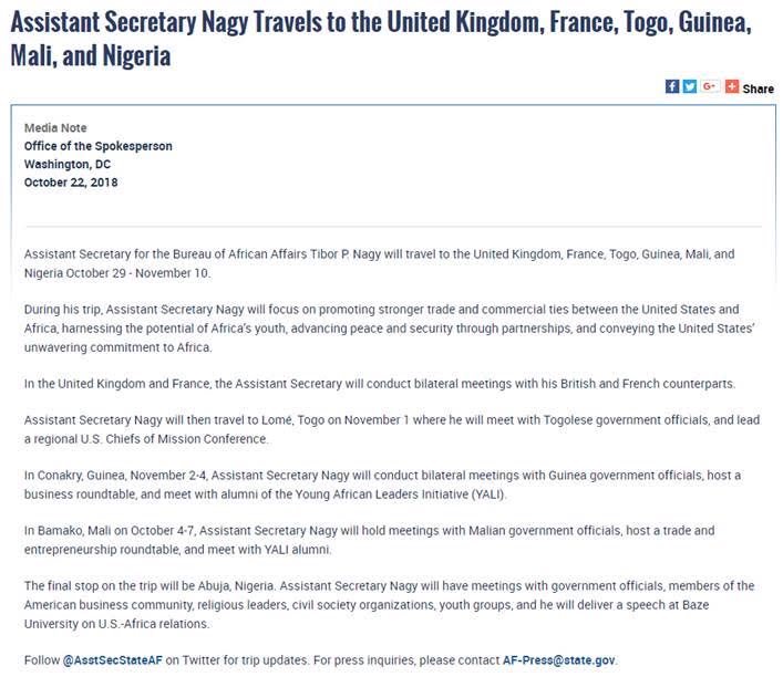 Tibor Nagy‏Verified account @AsstSecStateAF Oct 23