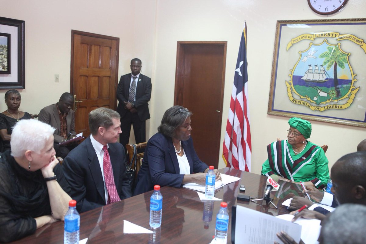 US delegation consulted w/ President Sirleaf in #Liberia earlier today to discuss #EbolaResponse.pic.twitter.com/dYWkjQX34E