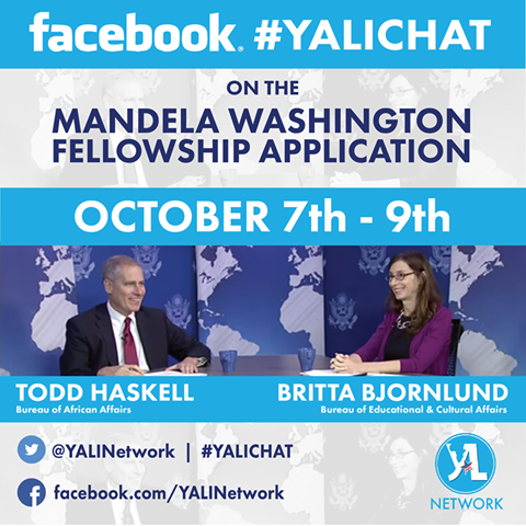 Got questions about the Mandela @WashFellowship? Get answers at our #YALIChat on http://Facebook.com/YALInetwork Oct. 7-9.pic.twitter.com/hocdi8rNpy