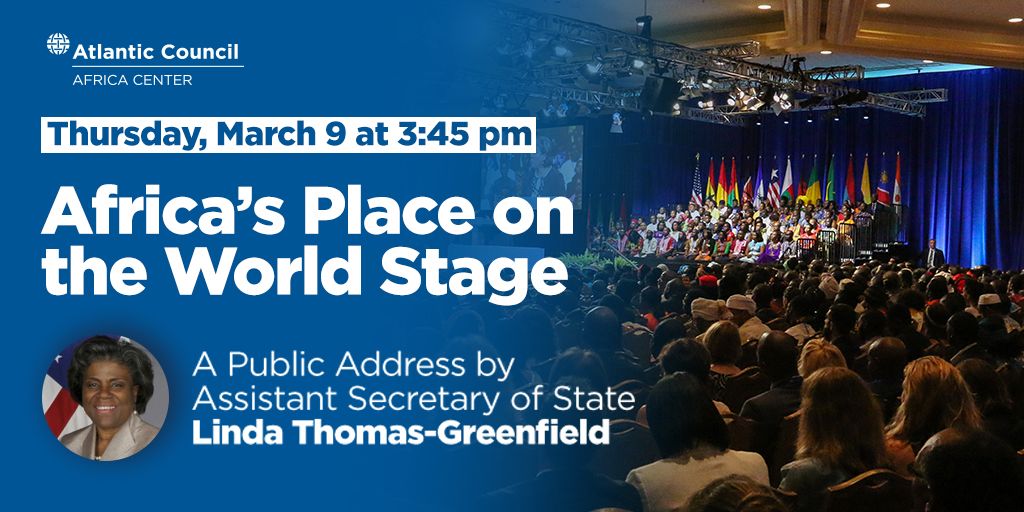 .@AsstSecStateAF Linda Thomas-Greenfield will speak at the Atlantic Council March 9. To register, click here->http://buff.ly/2lgDTDY https://twitter.com/ACAfricaCenter/status/837343244065320961 …
