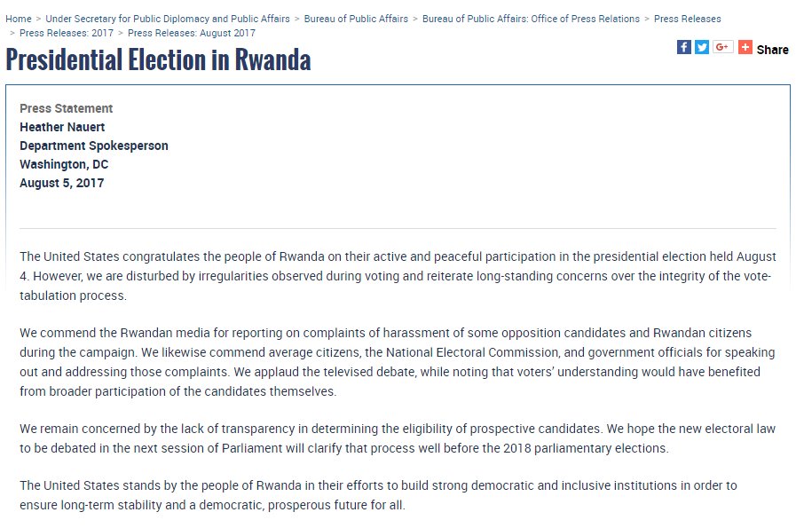 . We hope for a better and unbiased report next time as this doesn't reflect the truth #RwandaDecides #RwandaElection2017