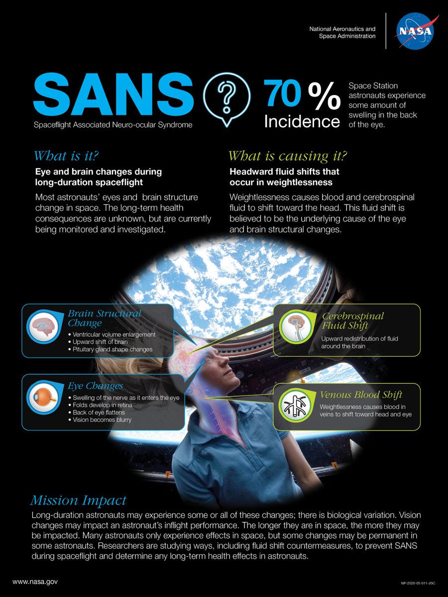 We’ve learned that most astronauts’ eyes and brain structure change in space due to fluid shifts that occur in weightlessness. Researchers are studying ways to prevent this during spaceflight and determine any long-term health effects. https://go.nasa.gov/3fzVgyz pic.twitter.com/LgRzXPe1jO