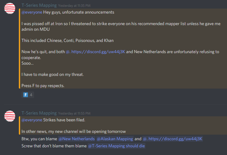 @TeamYouTube even if you terminated him, he has been making new accounts, and @discordapp he has been raiding discord servers to shut them down.