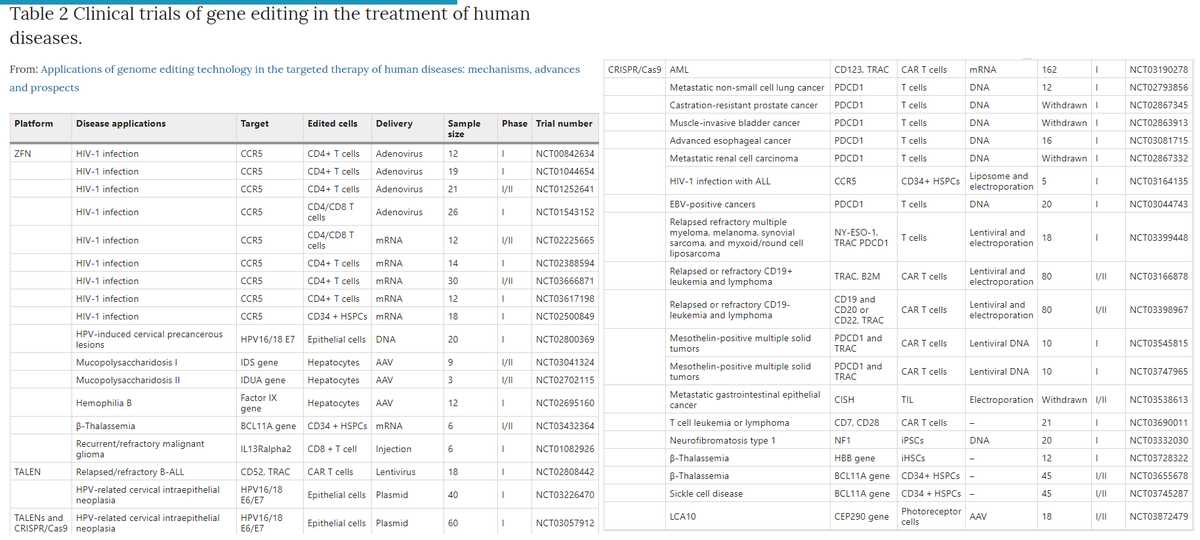 Best list yet of all the genome editing trials in humans (n=37) so far. https://twitter.com/Primary_Immune/status/1217467118427439105 …pic.twitter.com/AVYIe1viy6
