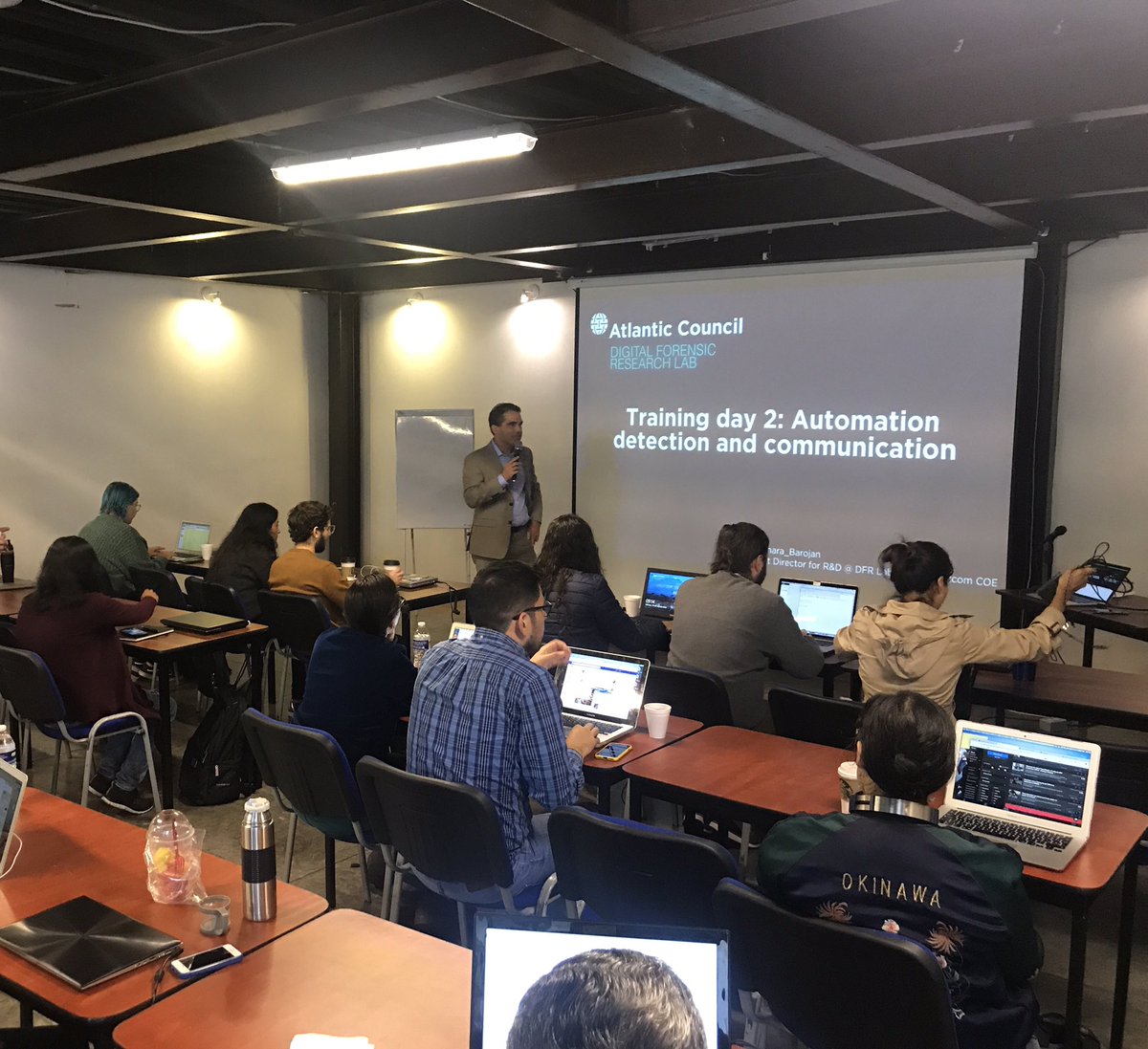 @ACLatAm &@DFRLab workshop in CDMX today with Mexican press/civil society on botnets, their increasing automation, and how to measure & counter their impact on public opinion online. Thanks to@pajaropolitico,@article19org,@verificadomx for helping to make this happen!pic.twitter.com/QEXuyYhdlC