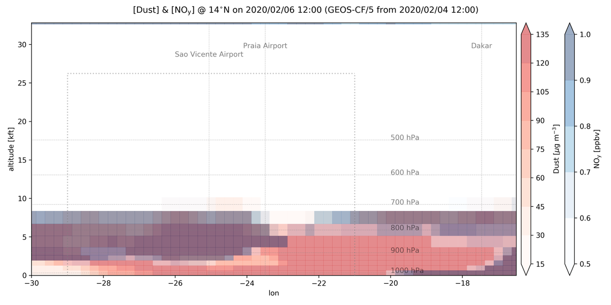 #ARNA science flight with@faam146. We're heading south from São Vicente to study where dust interacts with anthropogenic and biomass burning plumes (NOy).#RealTimeChempic.twitter.com/qnmUM5Pqzh
