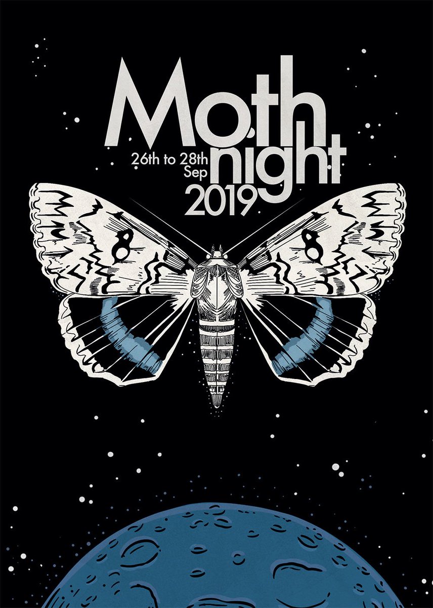 The striking image for Moth Night 2019 has been captured on a poster (A3) and is available to purchase from Atropos Books priced at £20*. Order yours now to display at home or in the office https://www.atroposbooks.co.uk/moth-night-2019-poster …. Artwork by