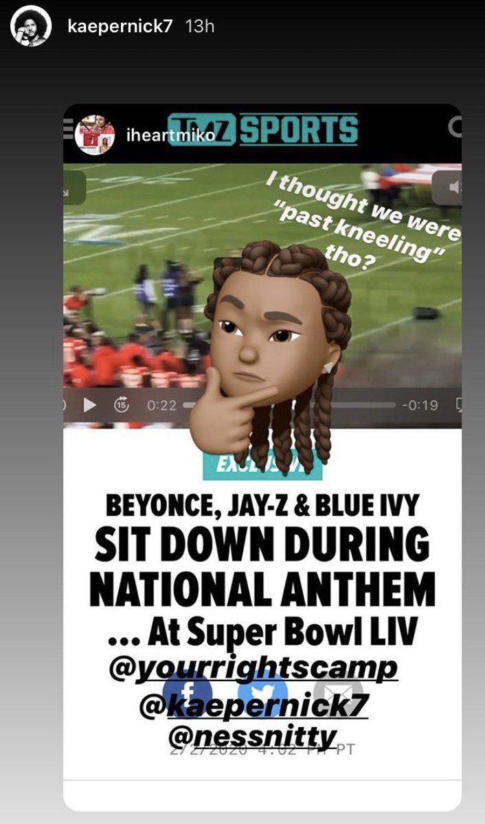 #SuperBowl. I have some questions...#StillWithKap. So we are passed kneeling but we are sitting? Good question from@Kaepernick7.pic.twitter.com/ANe5pMNP0j