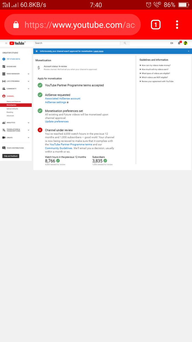 Hello @TeamYouTube My Channel is Completd 1k Subscribe and 4k watch hours in previous 365 day's but My Channel is still under review please help me Channel Name- Masala Beast Channel- https://www.youtube.com/channel/UCCLwCrvixT23UUzcvtTTe9w … Thank youpic.twitter.com/UB8tyHq6HR