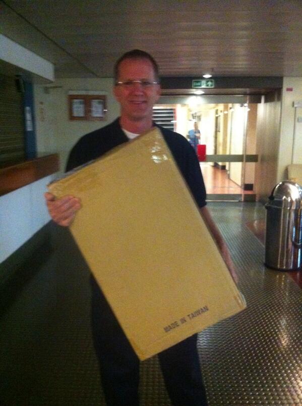 Keith, @MercyShips' wonderful programs administrator, carries pulse oximeters from the ship to training. Let's go!pic.twitter.com/BAJH8wlGfX