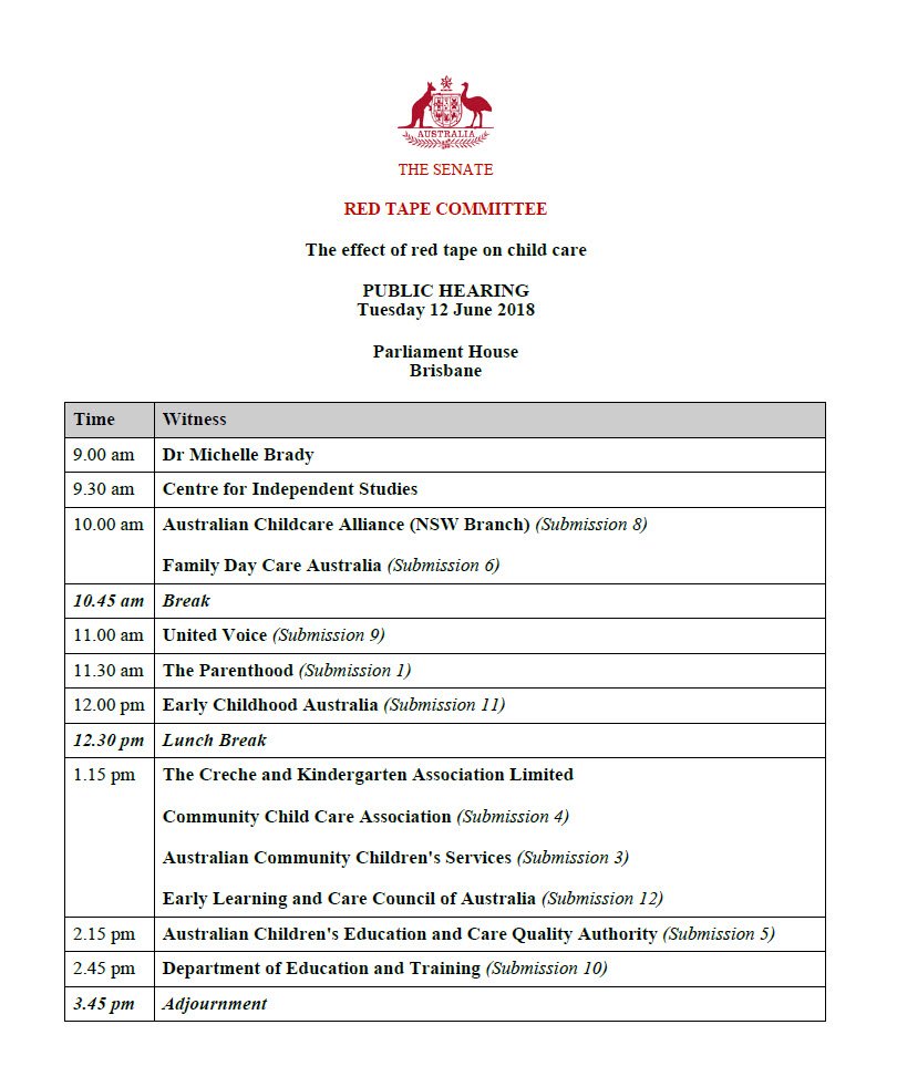 A public hearing into the effect of red tape on child care is being held in Brisbane today Live: http://bit.ly/LiveParl pic.twitter.com/fqNkn4AtMO