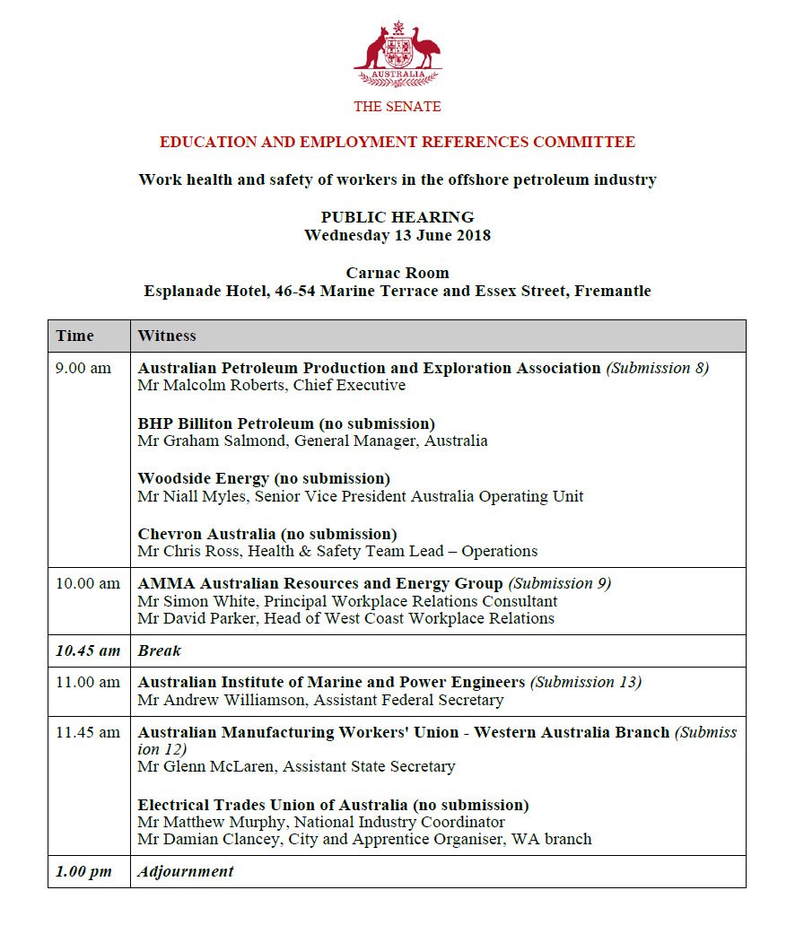 The Education and Employment References Committee is in Fremantle today for its inquiry into work health and safety of workers in the offshore petroleum industry Live: http://bit.ly/LiveParl pic.twitter.com/dQAXUkQOFM