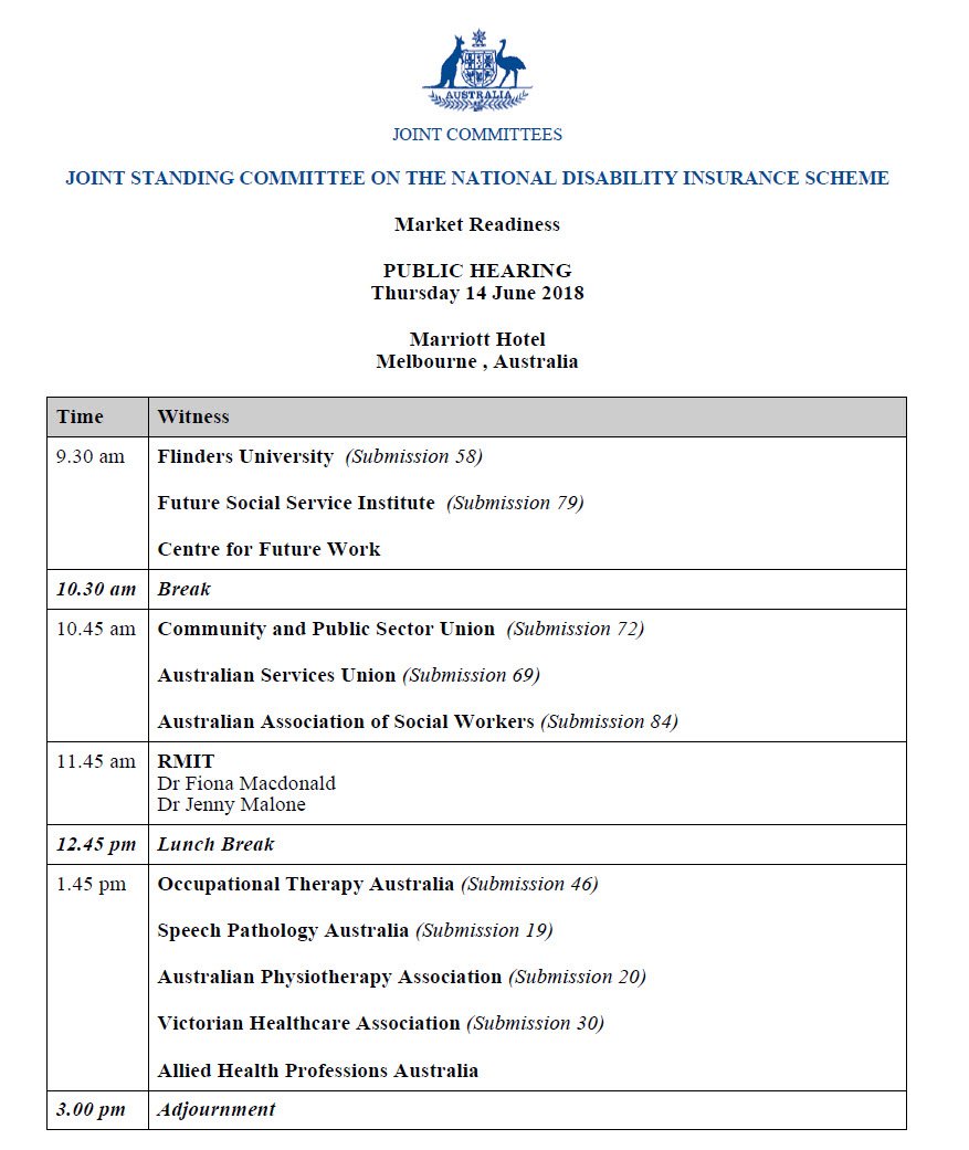 The Joint Committee on the National Disability Insurance Scheme is holding a public hearing in Melbourne today into market readiness Live: http://bit.ly/LiveParl pic.twitter.com/eD8VNpAxOj