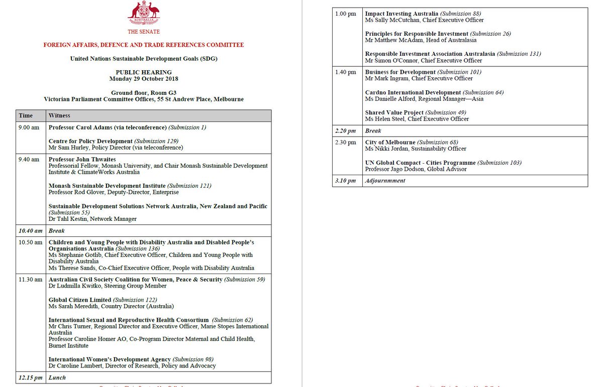 The Foreign Affairs, Defence and Trade References Committee is in Melbourne today for its inquiry into the United Nations Sustainable Development Goals Live: http://bit.ly/LiveParl pic.twitter.com/R61TDTBM1M