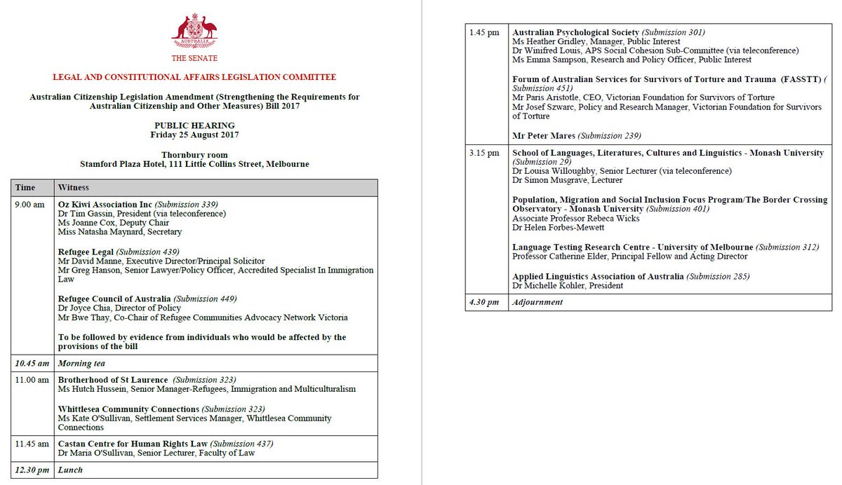 Further public hearing today in Melbourne into the Australian Citizenship Legislation Amendment Bill Watch live: http://bit.ly/LiveParl pic.twitter.com/VZoEkvGNT4