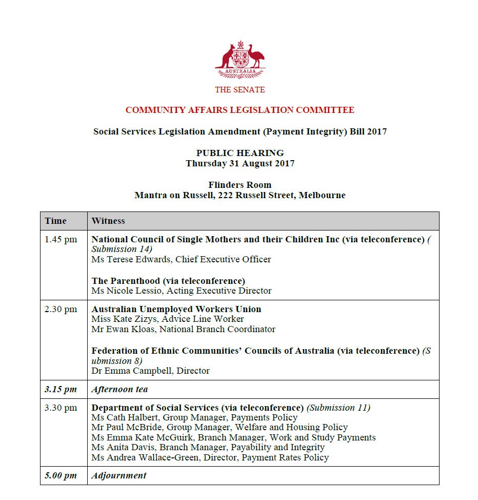 A public hearing in Melbourne into the Social Services (Payment Integrity) Bill gets underway at 1.45pm Live: http://bit.ly/LiveParl pic.twitter.com/8R3rccoC7x