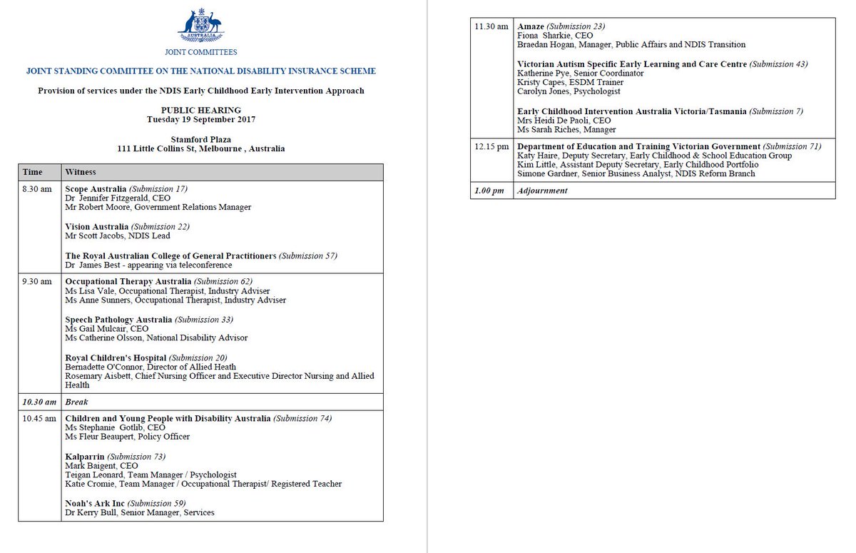 Public hearing in Melb today on provision of services under NDIS Early Childhood Early Intervention Approach Live: http://bit.ly/LiveParl pic.twitter.com/Z5uvmAbV5i