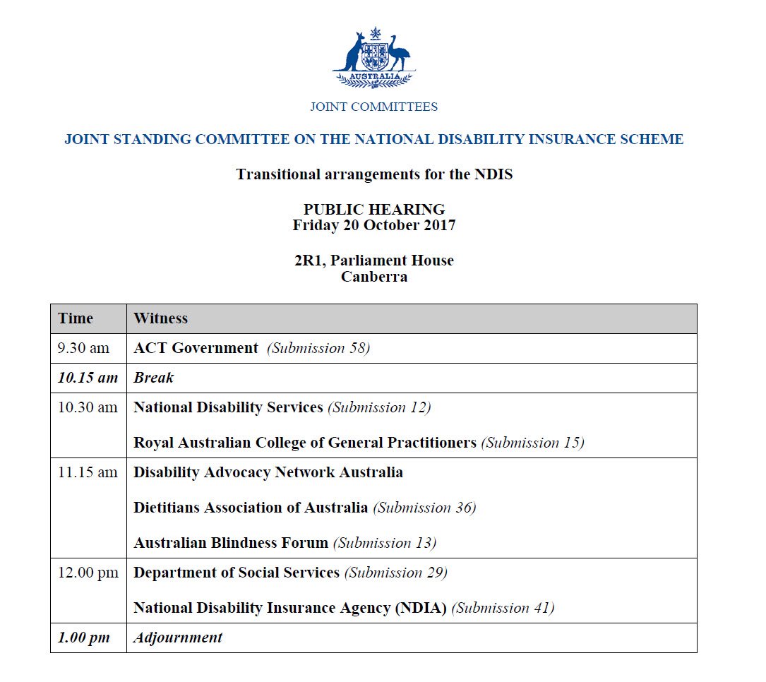 Joint National Disability Insurance Scheme Cttee public hearing into transitional arrangements for the NDIS Live: http://bit.ly/LiveParl pic.twitter.com/Qg2Hkxfgws