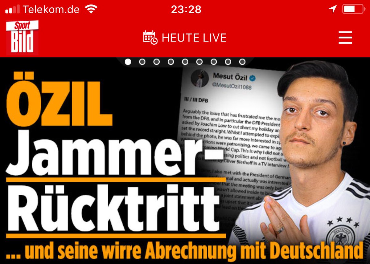 Özil beschreibt eine jahrzehntelange Doppelmoral des DFB,Teilen der Presse/Industrie.Werte sind beim DFB u. seinen Partnern leider sehr variabel.Hoffentlich führt das Statement zu überfälligen Diskussionen.Respekt vor diesem Schritt,der nebenbei auch finanzielle Einbußen bedeutet