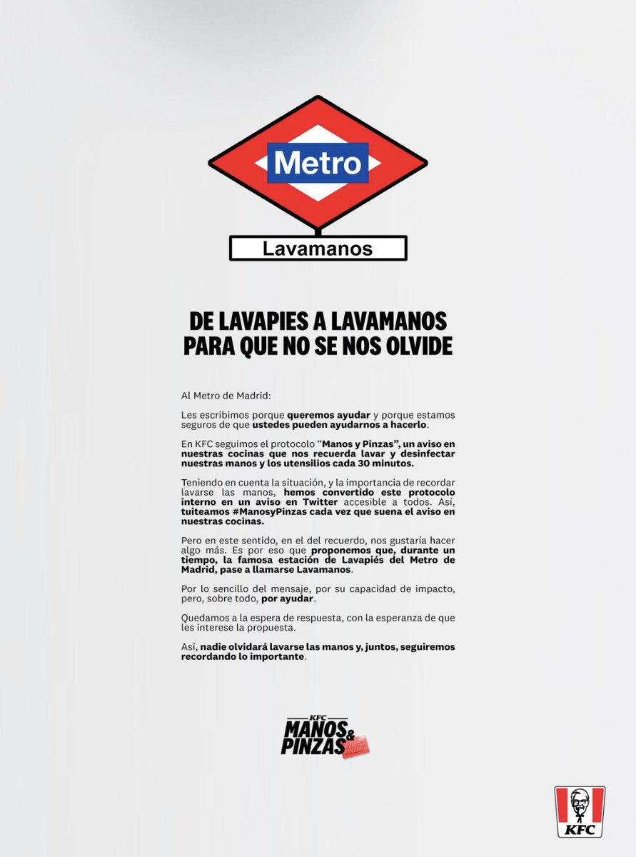 Me encanta la iniciativa @PS21__ y @KFC_ES. Es el momento de ser escrupulosos y nada mejor que recordarlo en nuestro día a día.pic.twitter.com/UKoPotmLOu