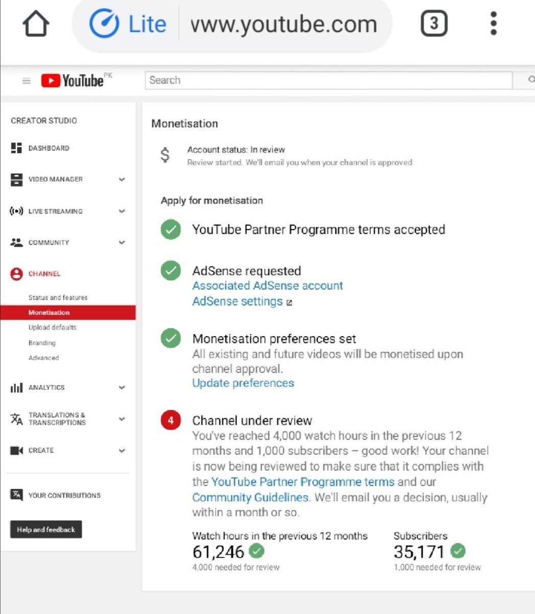 @TeamYouTube I am doing a lot of hard word kindly @TeamYouTube review my account, I have increasingly more subscriber day by day please monetize my channel so I can create content for my subscribers and for youtube. https://www.youtube.com/channel/UCIXVcYXCSBDwcAEYgcQbweA … pic.twitter.com/UhSJqhG8M9pic.twitter.com/HShE7hamyx