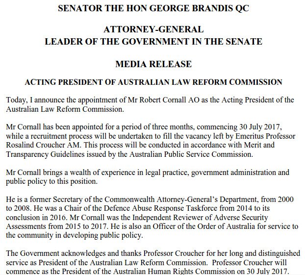 The ALRC has a new Acting President! Welcome Mr Robert Cornall AO #Auslawpic.twitter.com/fBOZTHcKza