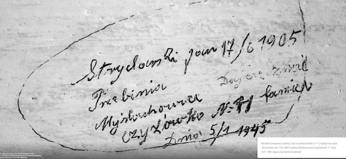 Jan Strycharski pozostawił po sobie napis na jednej z belek sufitowych w bloku 11: "Strycharski Jan, 17/6 1905, Trzebinia, Myślachowice, Czyżówka nr 11. Dajcie znać familii. Dnia 5/1 1945" 2/4pic.twitter.com/SJcccEXMwD