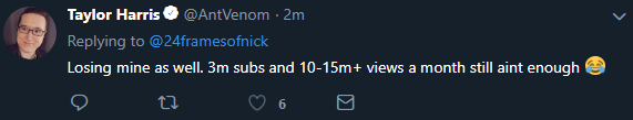 This is absurd, You can't be serious. HE HAS 3 MILLION SUBSCRIBERS BRO WHATpic.twitter.com/RQrOEZkpki