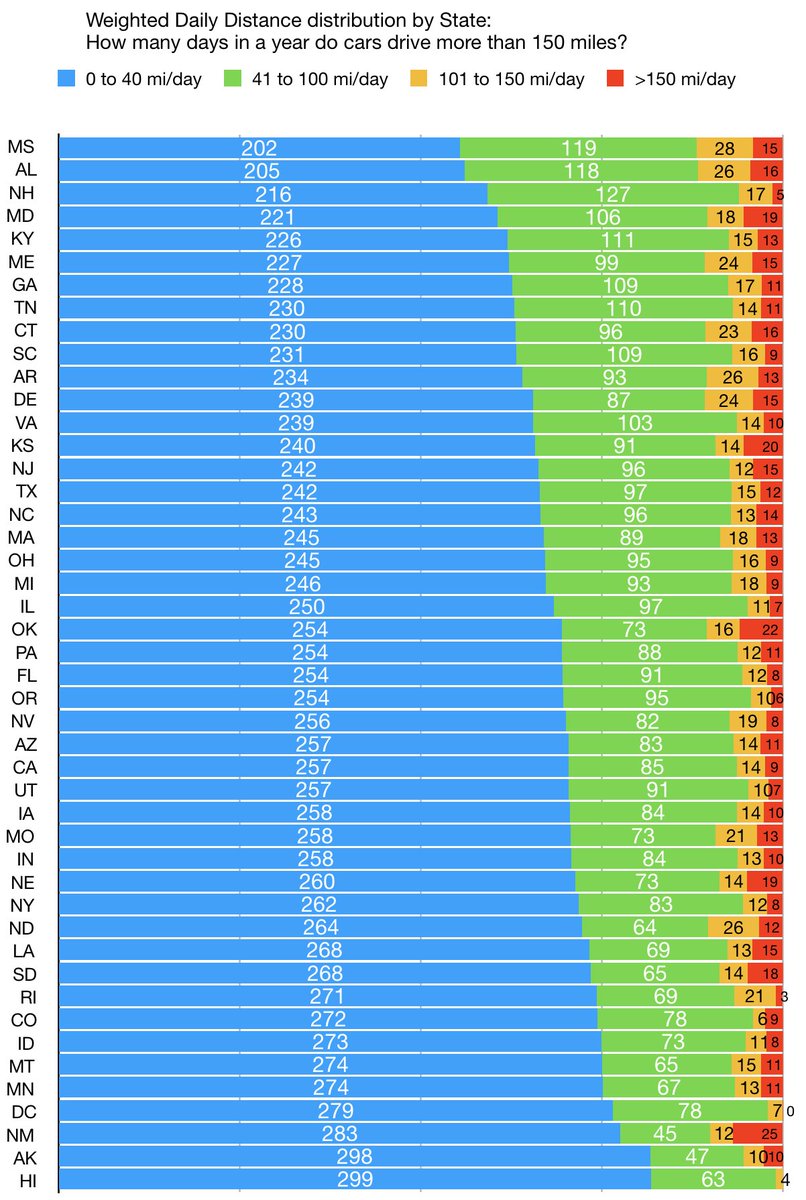 Another view on travel distances per day. How many days in a year do cars drive how far, by state?pic.twitter.com/sOzLH3gRoW