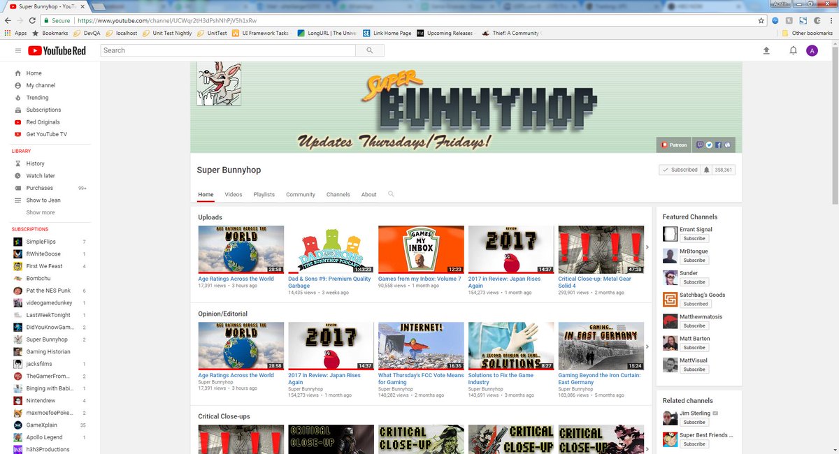 @TeamYouTube I've been noticing some of the channels I'm subbed to not showing up in my Subscriptions page. Here you can see @superbunnyhop has a video 3 hours old, but it's not on my subs page.pic.twitter.com/BsOeBq7J1T